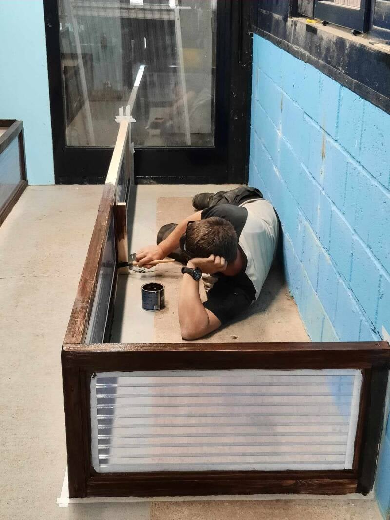 19-05-2024 : Achter de schermen hebben we nog wat zitten prullen. Of beter gezegd, heeft Koen zich nog wat bezig gehouden met verder knutselen. Dat ging voor hem ook niet zo makkelijk omdat Olaf altijd bij hem was in het werkhuis. Toch heeft hij verder gewerkt aan de bevallingshokken. Ze zijn zo goed als af, het is nu enkel wachten op de glasplaten, die zouden deze week aankomen.