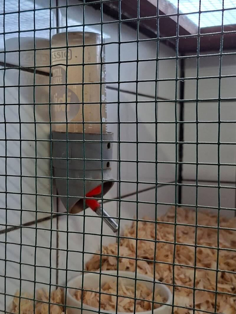 21-06-2024 : Vanmorgen het wekelijkse onderhoud van de hokken gedaan. Iedereen weer even nagekeken, hier en daar wat nageltjes geknipt. De hokken liggen er weer netjes bij, de uitloop van de konijnen (zij hebben de hele vloerruimte aan 1 kant van het stalletje) is weer voor even opgeruimd. De bodembedekking in de hokken ziet er een beetje raar uit op foto. Komt omdat ik het fijn gehakselde tarwestro aan het vervangen ben door houtkrullen. Maar omdat er nog goed strooisel in lag, heb ik dat naar achter geschoven en vooraan krullen gelegd. Dus voorlopig twee soorten bodembedekking door mekaar. Bij de volgende schoonmaakbeurt zal het wel opgeruimd zijn, vond het zonde om al het zuivere strooisel weg te gooien.
